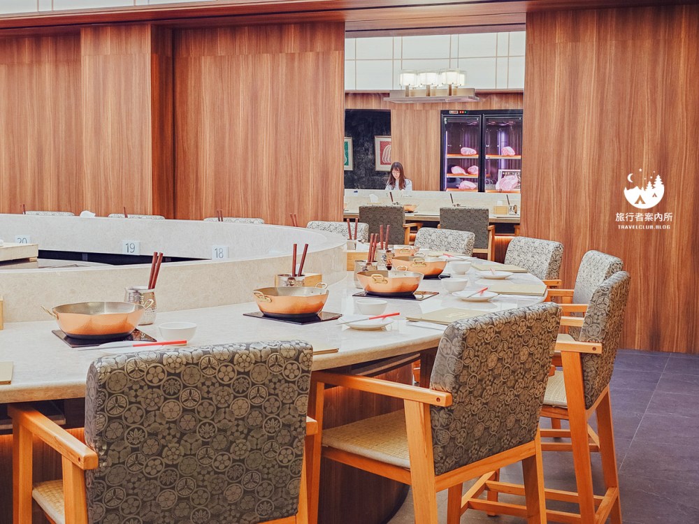 山里見月的吧檯座位區有特別設計過,比其他火鍋餐廳更寬敞、桌子更深,所以餐點一道一道上來不用收盤子都還能有位置放,提醒大家可以坐離桌子近一些,會比較舒適。