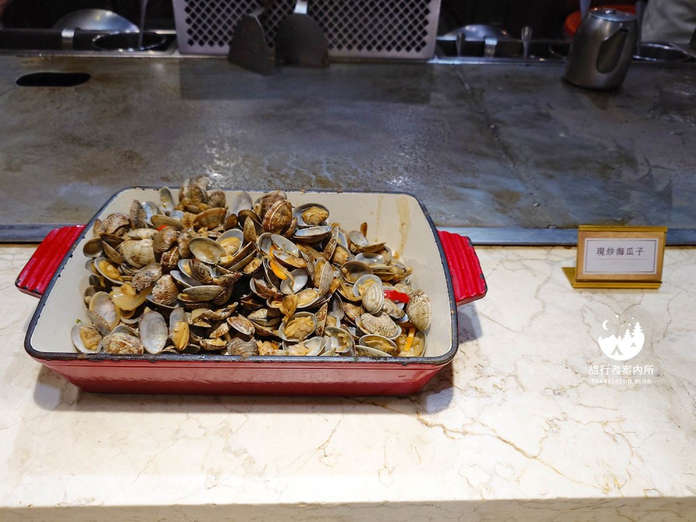 先來介紹一下我個人很喜歡的【鐵板區】,今日供炒海瓜子、鐵板牛肉和香煎魚肉,都是我愛吃的料理,但這區的缺點就是人多時要有一些耐心,排隊難免。