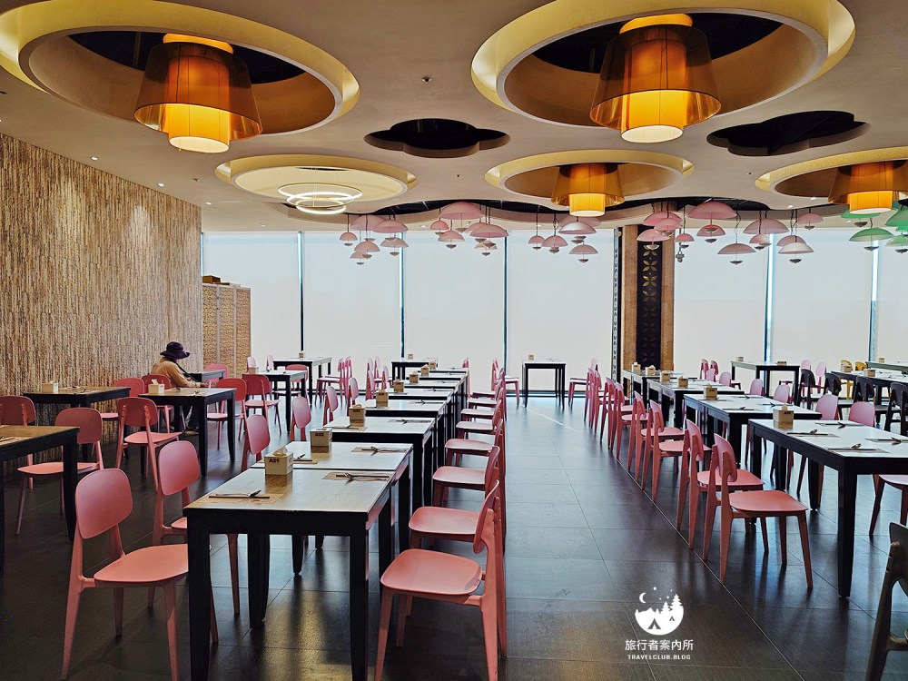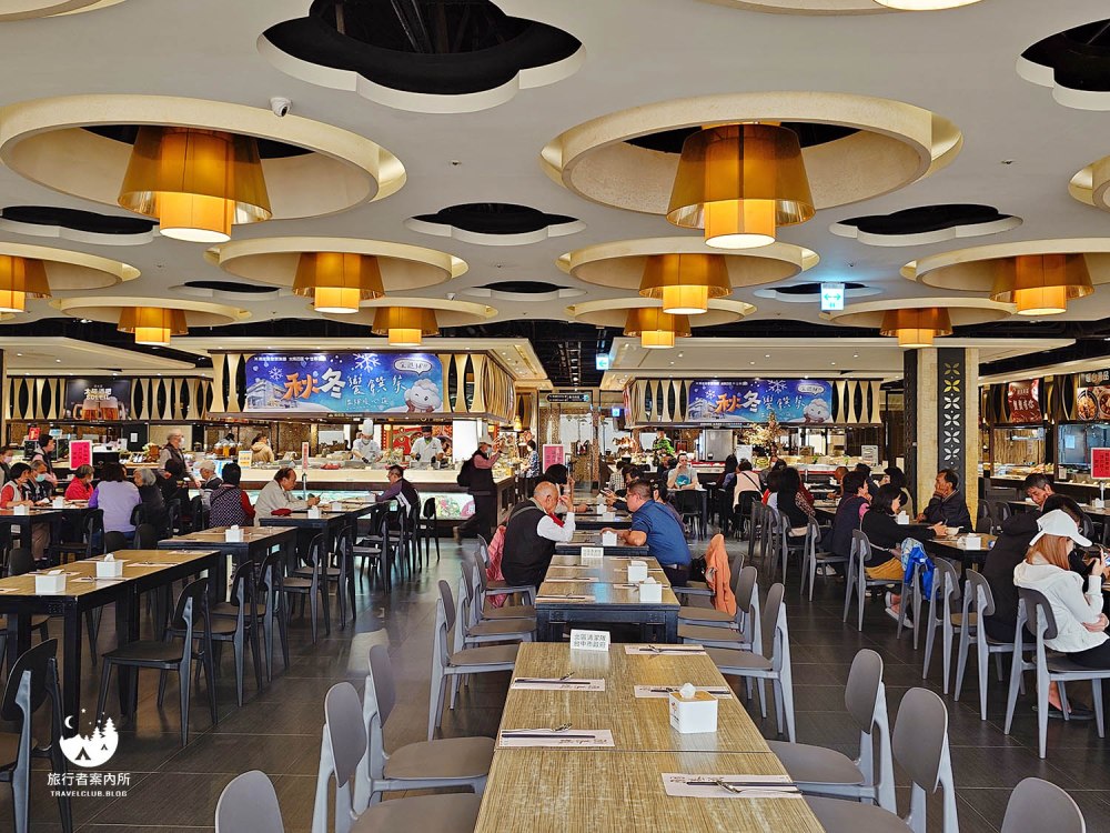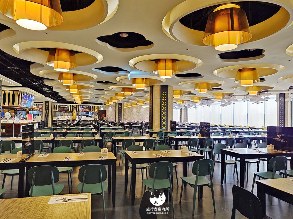 潮港城太陽百匯的用餐空間為一整個平面,座位數量相當可觀,以基礎4人座位為主,若有多人預定就會協助併桌,位置不可選,但純論用餐來說,桌與桌間距都還算舒適。