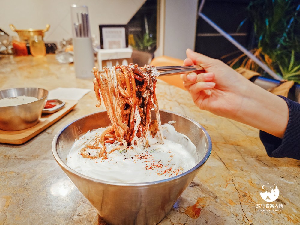菜單看到奶油炸醬麵覺得很新奇,因為一般吃的韓式炸醬都是黑色的且偏甜,不知道加了奶油是什麼味道,上桌後均勻攪拌顏色會比較偏咖啡色,韓式炸醬會跟鮮奶油中和,吃起來反而有胡麻醬(麻醬麵)的感覺,太特別了!