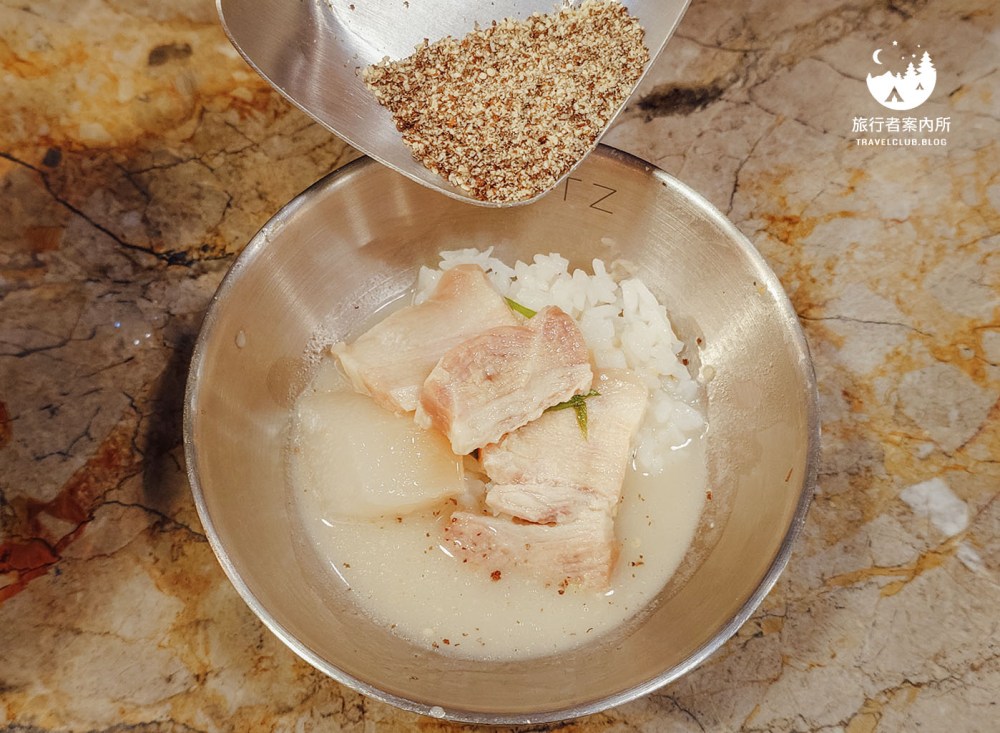 他們家的豬肉湯飯沒有蝦醬,但提供韓式辣椒醬、紫蘇籽提味,而且湯燉的好好喝,我愛吃豬肉湯飯的朋友給予高度好評,最經典的吃法就是拌著白飯吃,當然的單獨當湯來喝也很美味。