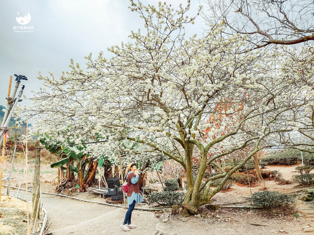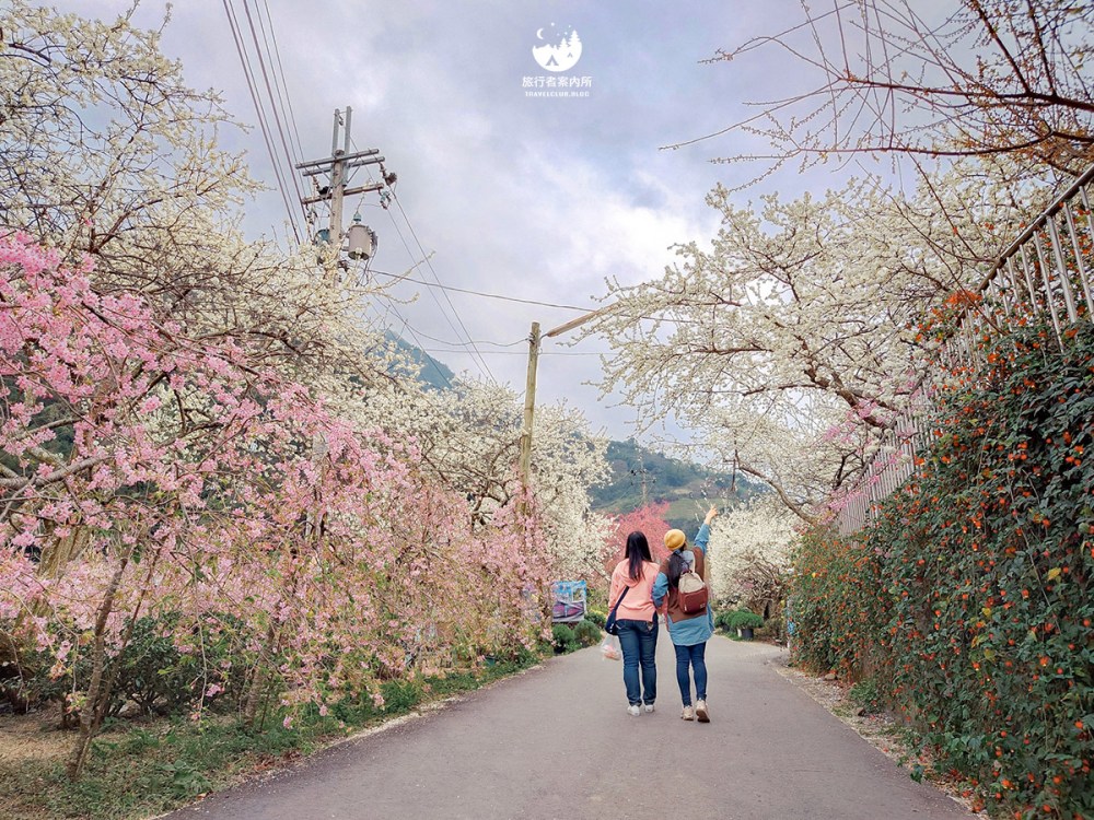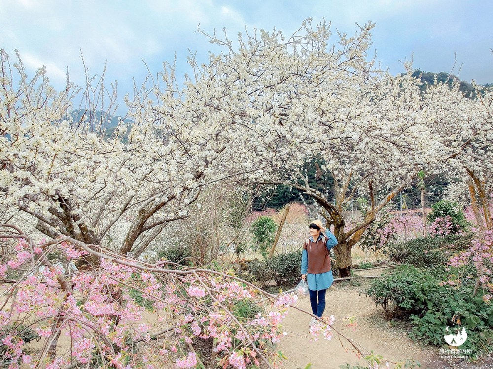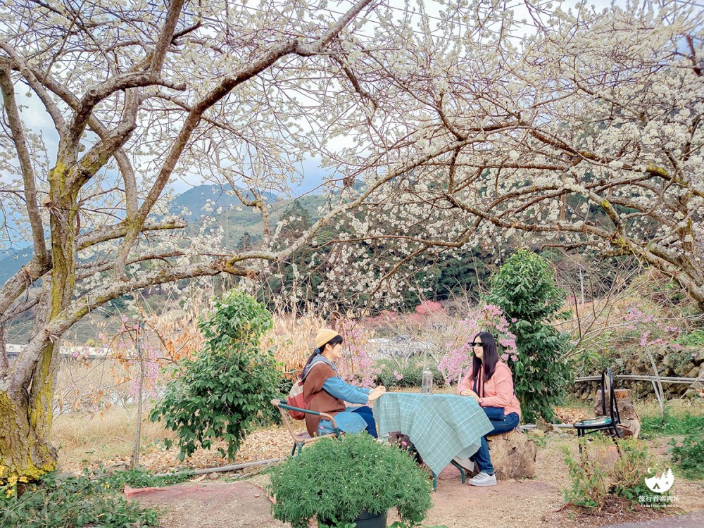 若不買農產,不妨停留下來喝杯飲料,欣賞少見的粉色柳櫻與白色李花交織,景色超迷人相信我。