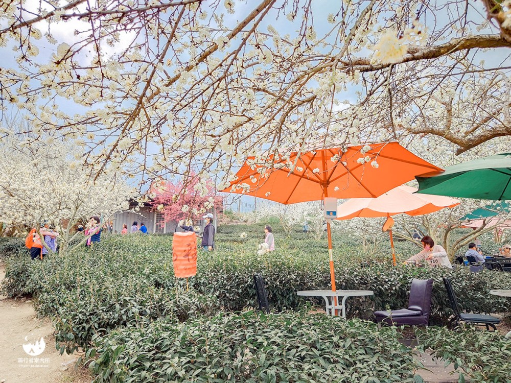 園區茶園規劃成用餐區,搭配李花、桃花等花卉,環境讓人眼睛一亮!