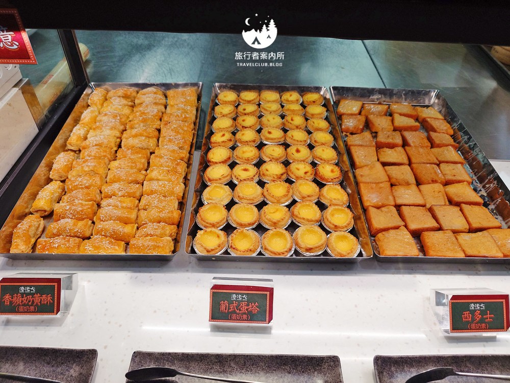 這裡我吃到比較喜歡的有葡式蛋塔(做成兩口就能吃完的大小很方便,會爆漿)、香蘋奶黃酥、荸薺馬蹄條、鮮蝦腐皮捲,但Asta還是建議有興趣就拿,畢竟每個人的口味喜好大不相同。