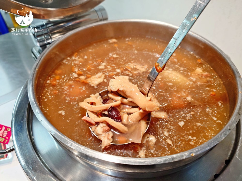 提供四種甜湯、新鮮水果,甜湯有桂圓紅棗銀耳、芋頭西米露、楊枝甘露還有杏仁豆腐,我在這大推杏仁豆腐,尾韻不嗆很好吃,還可以搭配其他三種湯品當豆花吃喔!