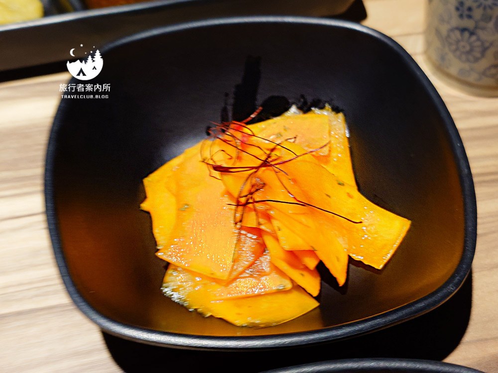 每桌都會附上小菜,這兩道還真的是比較少見的,南瓜吃起來比較清爽可以去油解膩、醃製蘿蔔就很奇特了,吃起來竟然像地瓜,我個人是覺得已經沒有紅蘿蔔味了,怕紅蘿蔔的可以給它個機會吃吃看。