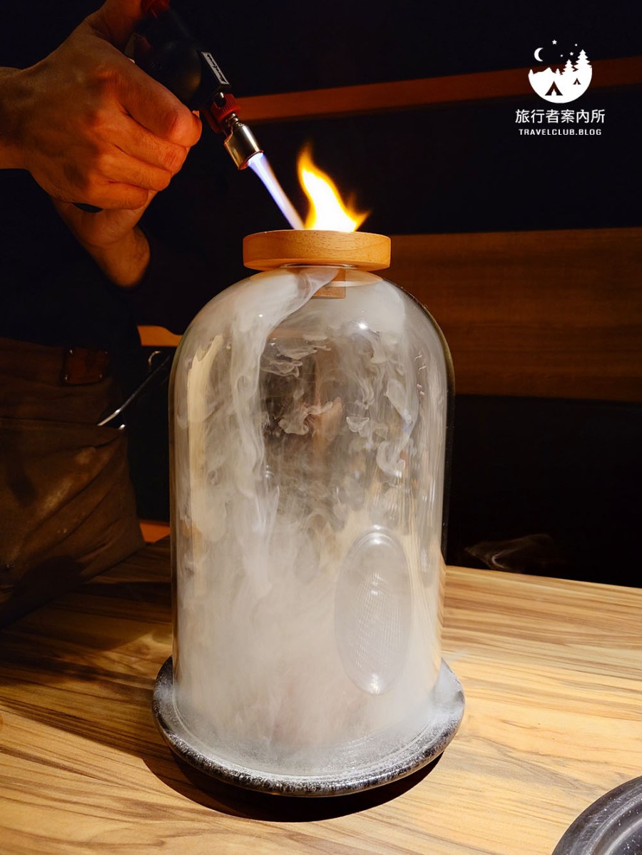 屬於分子料理的概念,會點燃蘋果木注入「霧」的祝福,等時間到後牛排就會充滿祝福的味道—【祝你生日快樂】。