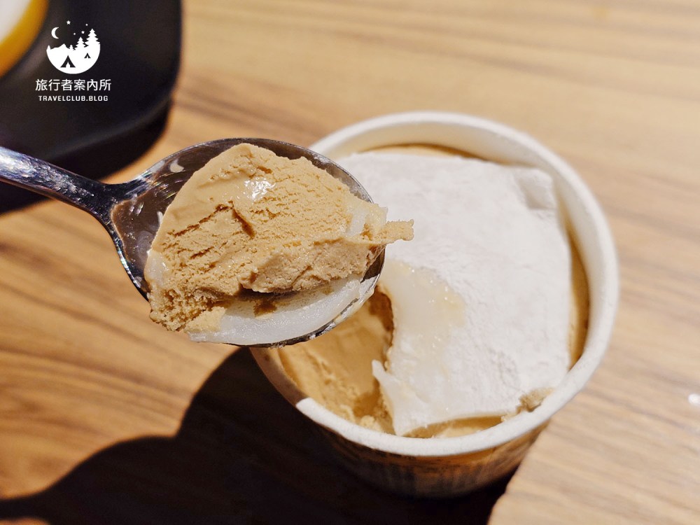口味走在很前面的冰淇淋口味「生椰拿鐵」,其實椰子味淡淡的並不重,吃起來大部分都是拿鐵味,上方還有一塊麻糬,滿有特色的。