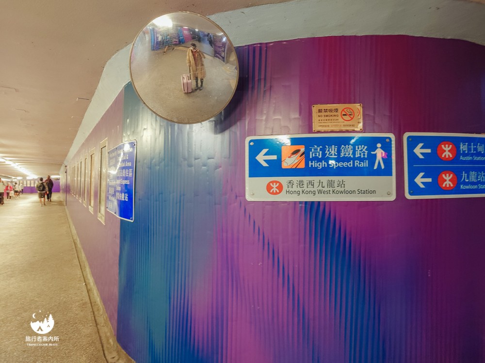 白天通勤時段還滿多人在走的,香港人的特色就是步行速度也很快,拖著行李的我走邊邊不要檔在中間就好,一路順暢,往「高速鐵鐵路」標示走就是。