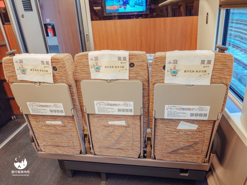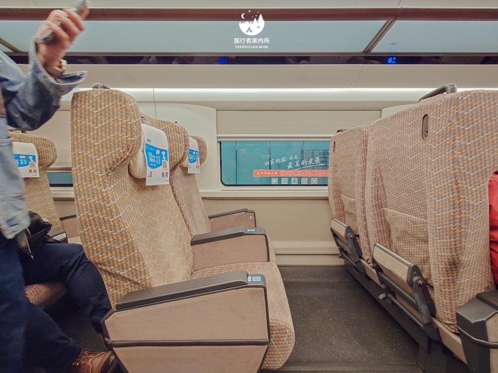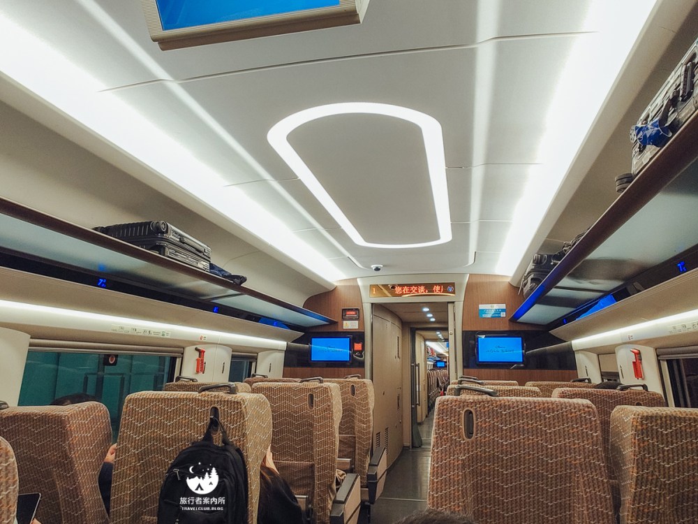 二等座空間也不會差,就跟我們台灣高鐵一般車廂配置是一樣的,但由於乘車的人多也較雜亂,且通常沒有辦法像台灣人搭車時安靜,看片的開喇叭看片、講電話的大聲講話、聊天的聊天,說實在沒辦法好好休息,尤其長途乘車下來疲勞反增,但如果沒其他位置也是只能選二等就是。