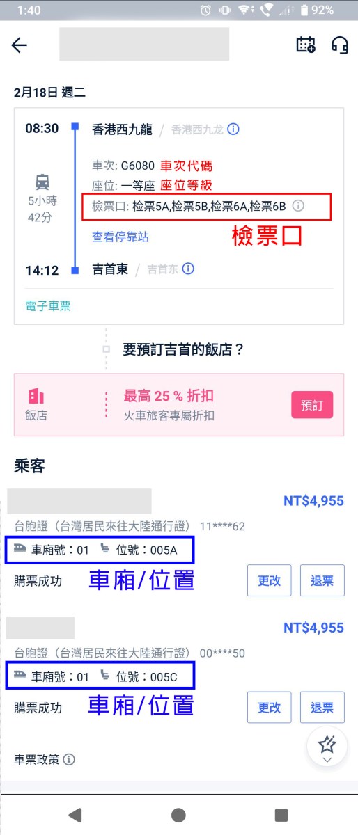 由於現在香港高鐵/中國高鐵都已電子化且要實名制,所以不論現場買車票還是線上買好車票,都不會有實體票,僅需用證件購票和通過閘口即可,所以自己線上買票時,相關資料一定要正確輸入喔。