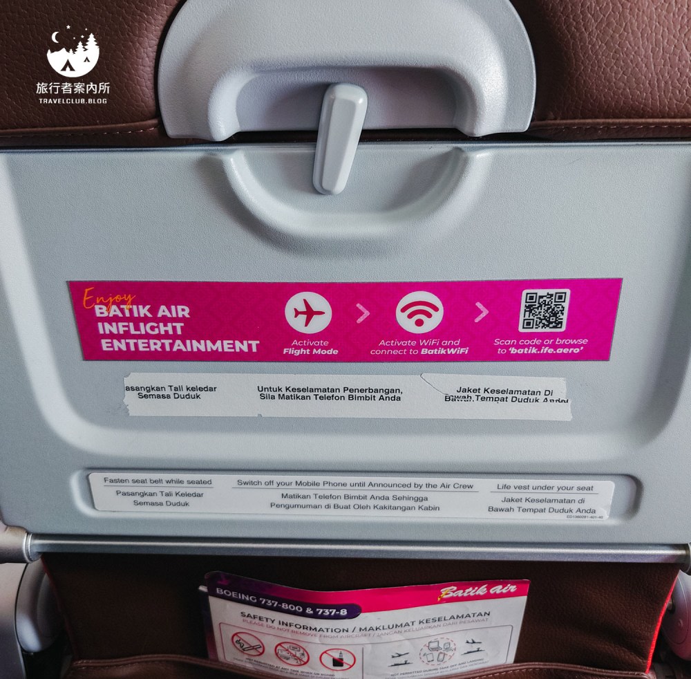 峇迪航空機上沒有娛樂螢幕,但也有簡易的替代方式,有免費的機上wifi娛樂,掃描椅背的QR-Code就可以用手機看娛樂內容,我看到有電影、音樂,但沒有中文字幕就是,對我來說短程線就是睡覺的份用不到娛樂螢幕,這也是我選峇迪航空的原因之一。