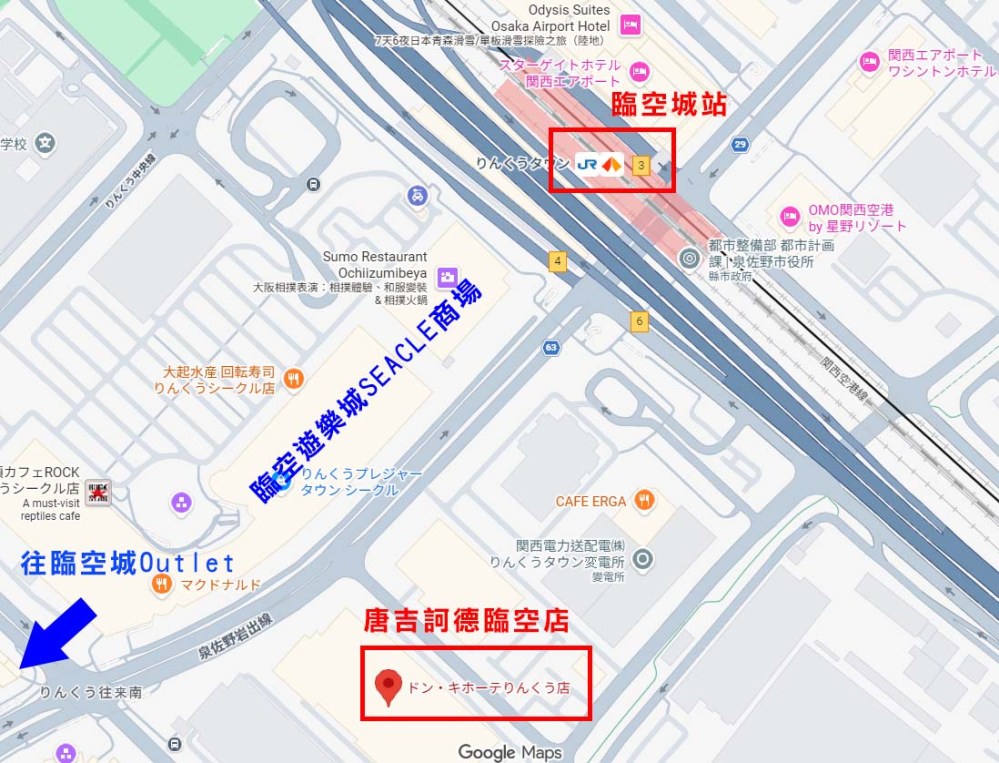 目前在Google搜尋唐吉訶德臨空店找不到(苦笑),有可能是新開店的緣故,但你可以改搜尋【Don Quijote Rinku】或【ドン・キホーテりんくう店】就能找到嘍。(可點連結直接Google導航)