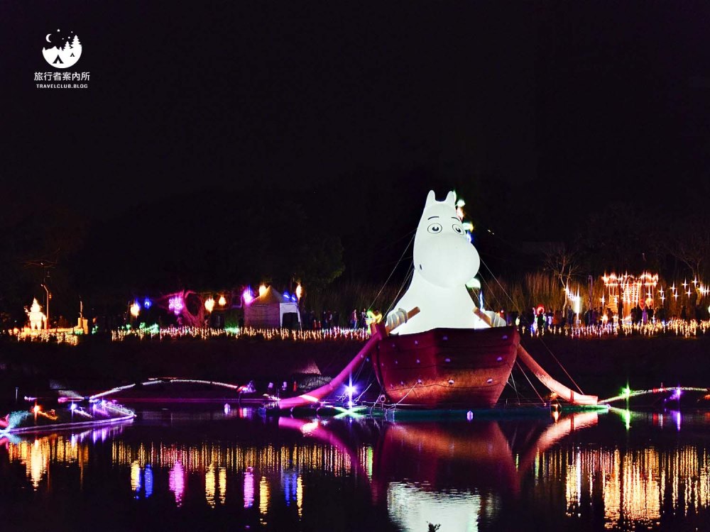 今年的河畔區相當單調…,就只有一隻划船的嚕嚕米,還有光環境和水霧會投射一下水面讓畫面看起來不會那麼單調,去年那些水上燒烤火鍋、詩籤燈通通都沒有,讓人失望的河畔區。