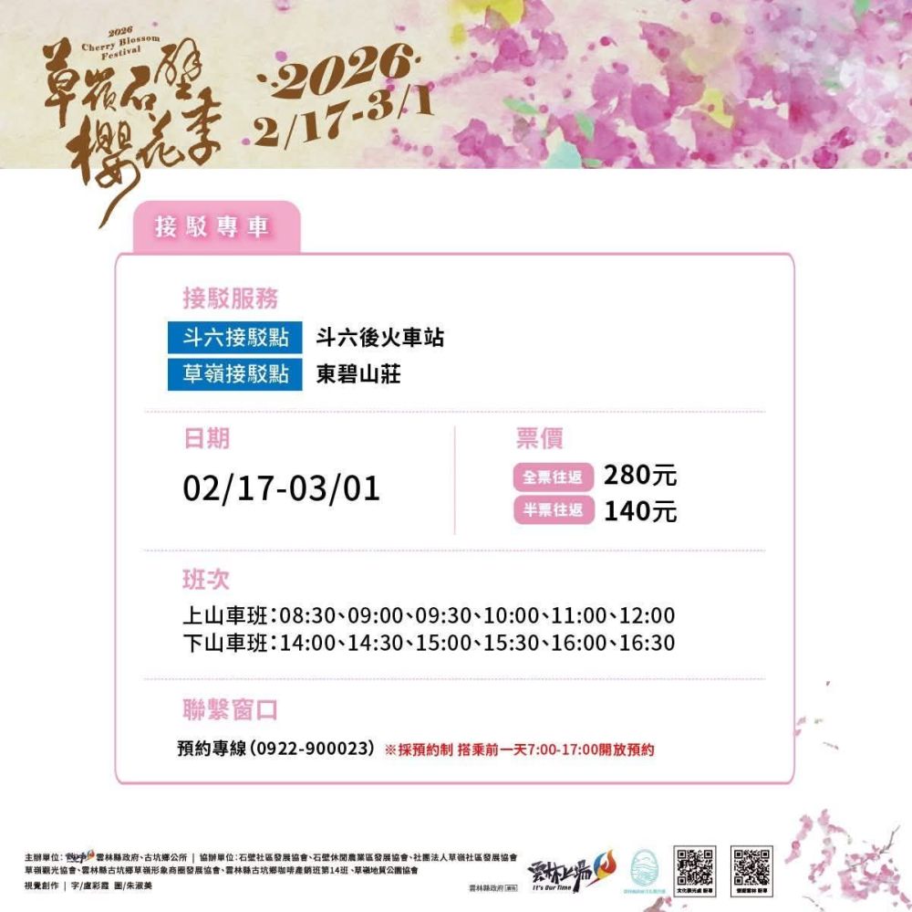 雲林草嶺石壁,是近幾年談論話題很高的新興賞櫻景點,從青山坪咖啡農場的早開櫻花為第一棒,一路開花至美人谷、九芎神木,但草嶺石壁位在深山內路途遙遠,若不自行開車不好前往,地方政府特別在櫻花季規劃一系列的對外、對內接駁車,以方便民眾能在不塞車的情況下賞櫻。