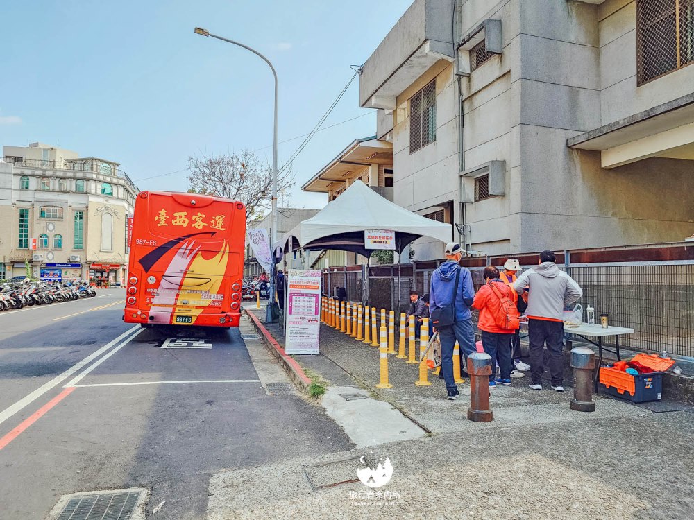 出車站後往右手邊走,就能看到這個白色的帳篷,這裡就是前往草嶺石壁的接駁車報到地點。