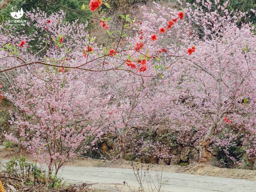 美人谷至九芎神木,這段是石壁最經典的賞櫻路線,全程約1.7公里,腳程快大概40分鐘能走完,但像我們這樣走走拍拍,至少要預留2小時的觀光時間才夠,因為沿路都會有美美的櫻花,就忍不住想拿出相機合影留念。