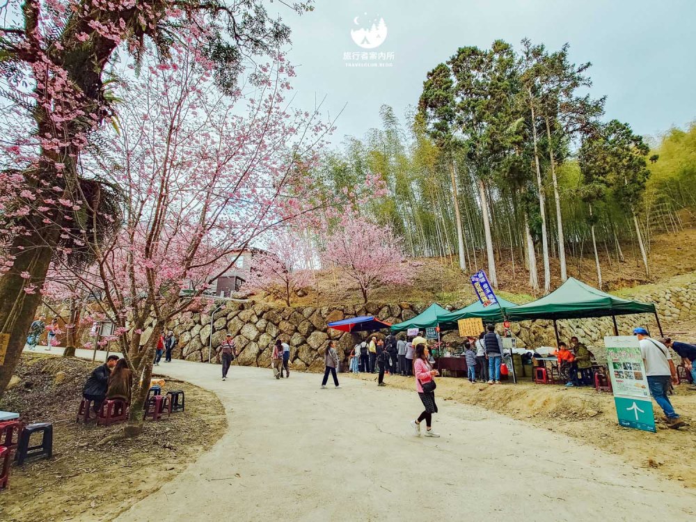 市集這裡大多是以小吃為主,人潮也會聚集在此處,畢竟賞櫻的美食攤位可不能少,而且爬完山也會累,這區也有不少櫻花,目測也大概只有5成開。