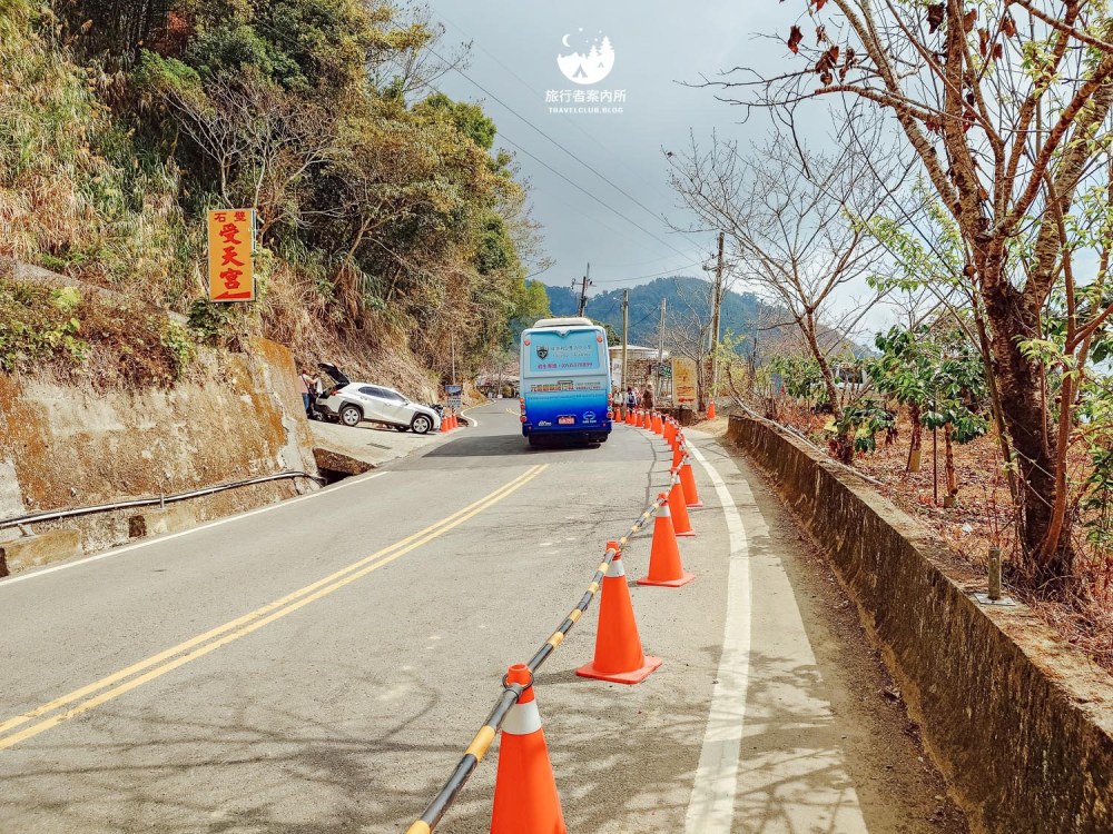 由於草嶺石壁為山路且越往上路越小條,為了避免塞車,櫻花季期間特別設立多個接駁點。