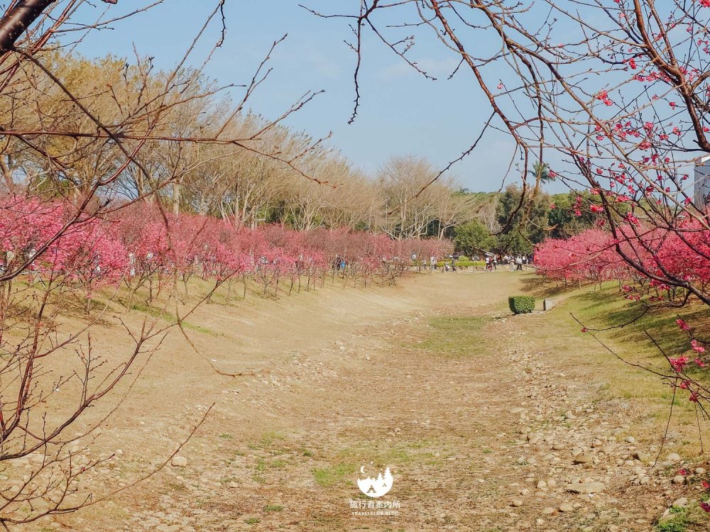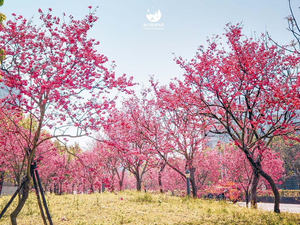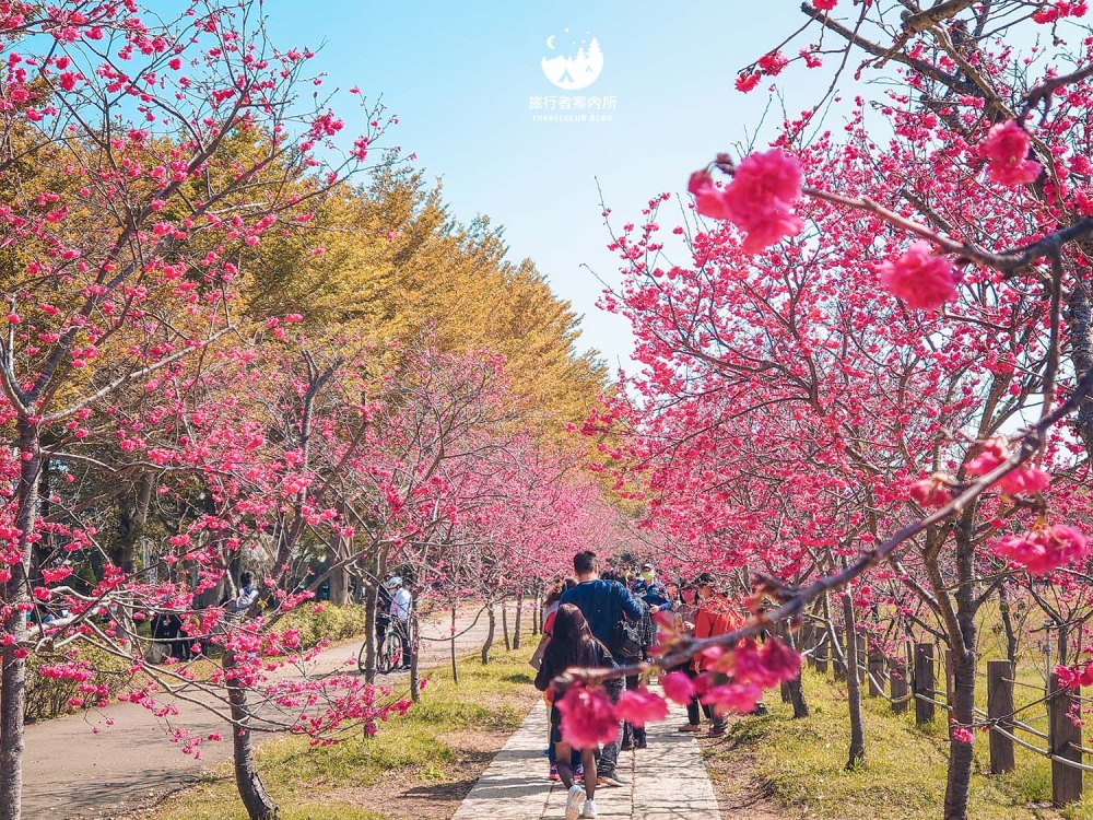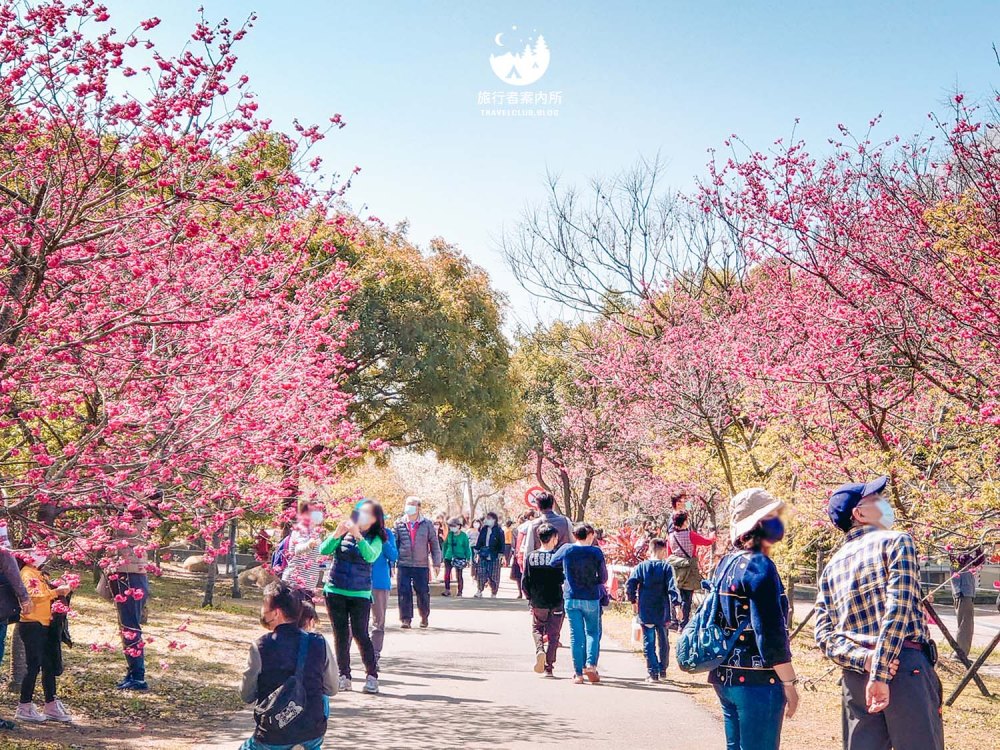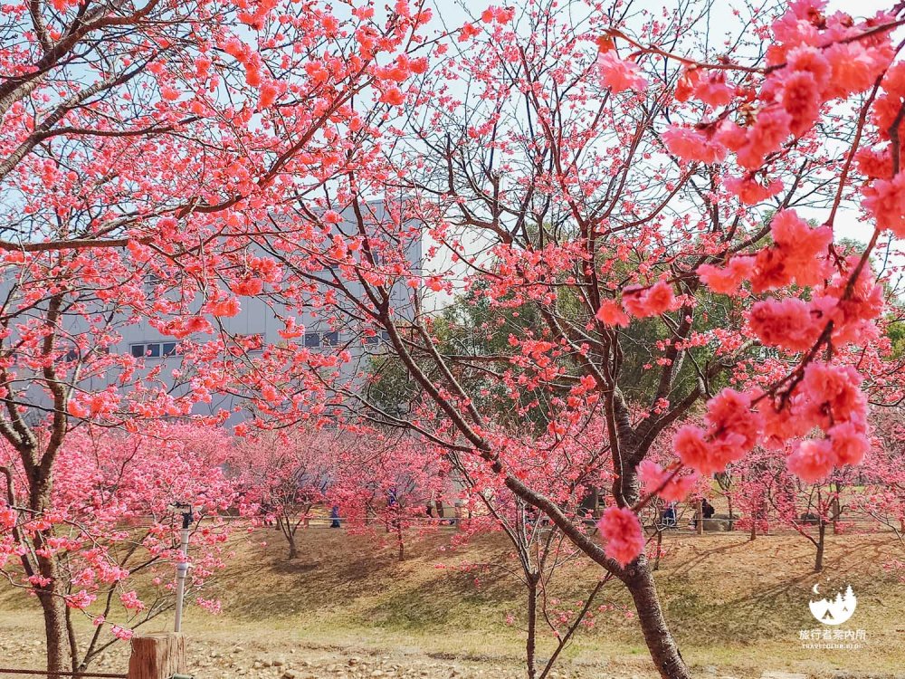 園區內種植約500多棵櫻花樹(持續增加中),品種包含早開的河津櫻、中期開花的八重櫻和綠萼櫻到晚開的吉野櫻等等,花季時間長,且公園平坦好走,不少當地人可是天天來散步運動,而我們住的稍為遠一些的人,開車騎機車來都相當方便,賞完花後還可以接著麗寶Outlet購物來個一日行程。