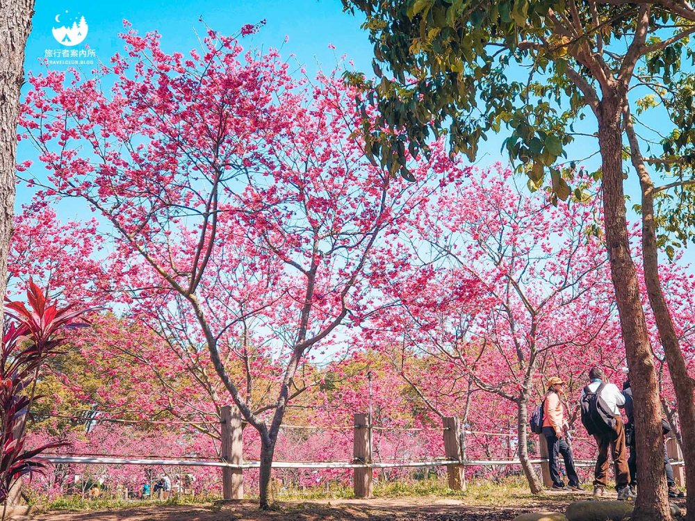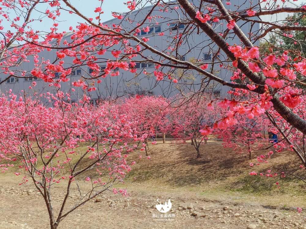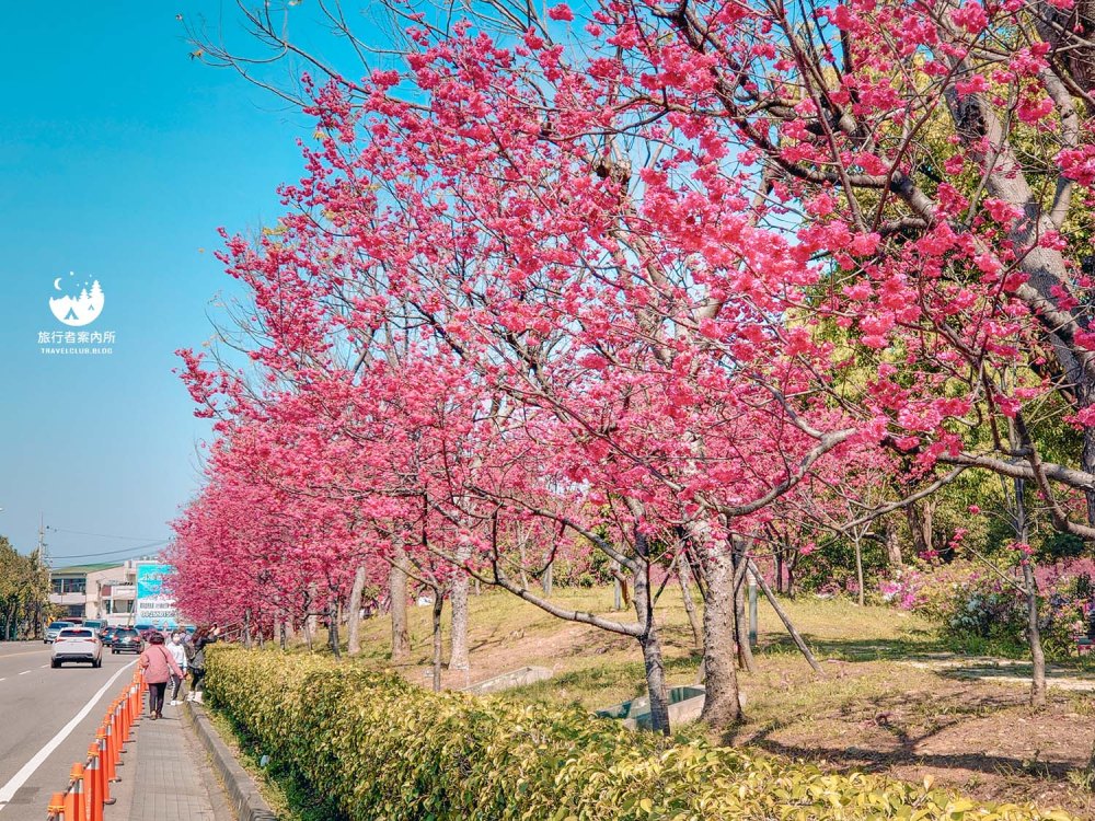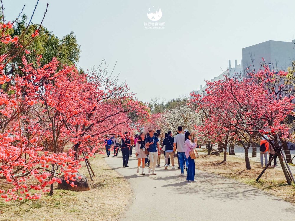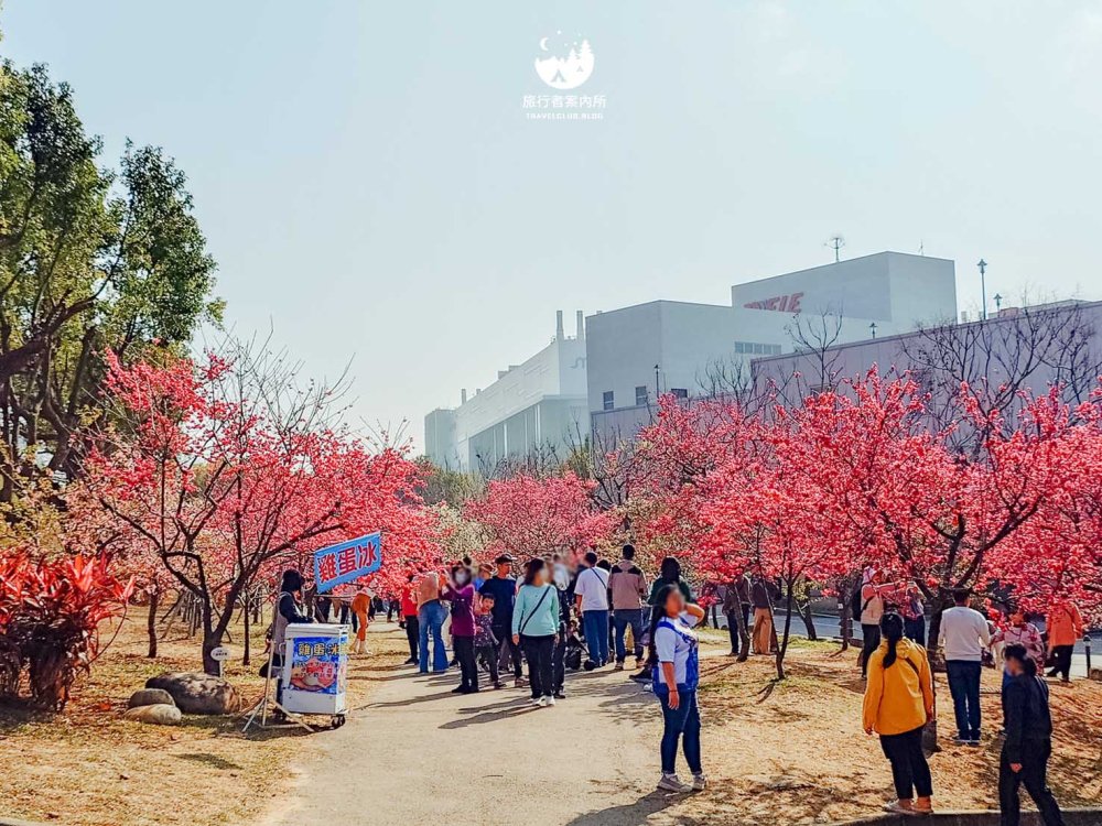 園區內種植約500多棵櫻花樹(持續增加中),品種包含早開的河津櫻、中期開花的八重櫻和綠萼櫻到晚開的吉野櫻等等,花季時間長,且公園平坦好走,不少當地人可是天天來散步運動,而我們住的稍為遠一些的人,開車騎機車來都相當方便,賞完花後還可以接著麗寶Outlet購物來個一日行程。
