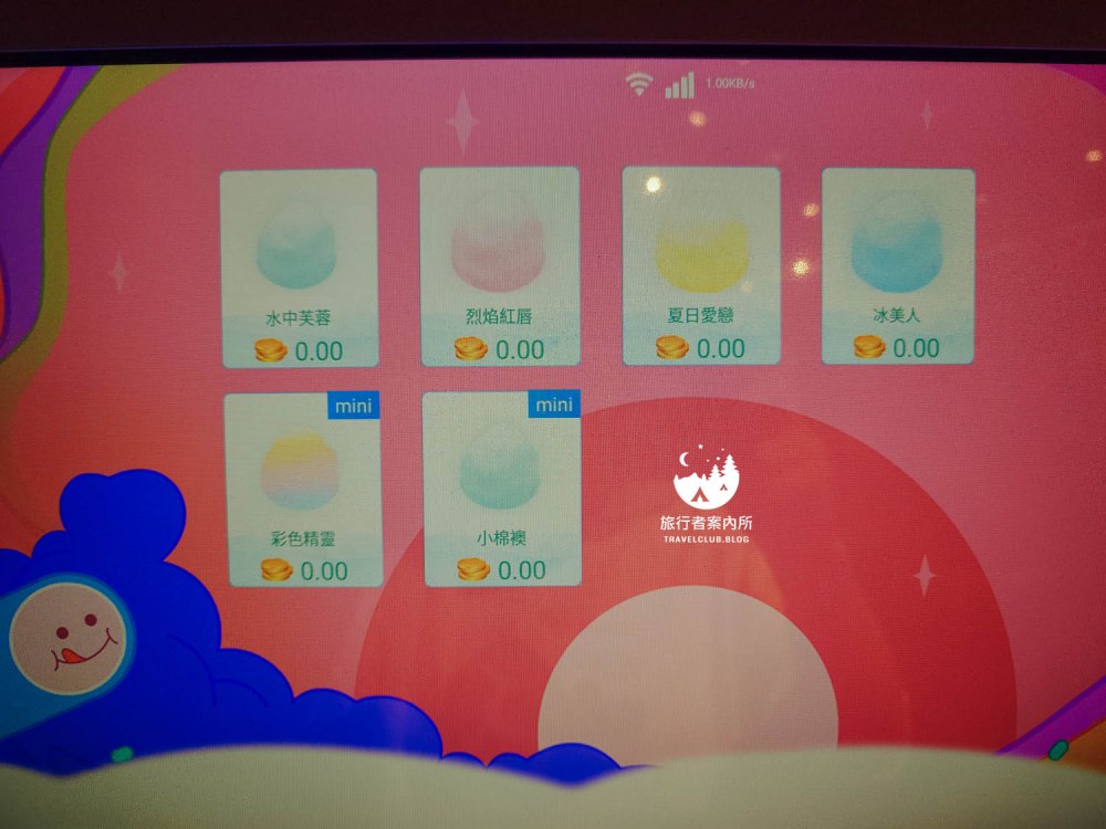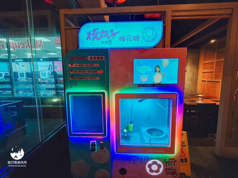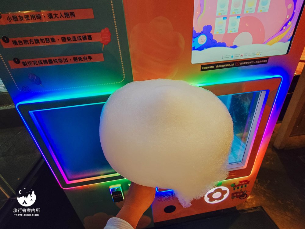 大門口旁有一台棉花糖機,現點現做,不需要拿任何代幣,直接螢幕操作選擇想要的顏色就可以嘍!(熱機+製作大概約要5~10分鐘的時間),這棉花糖也沒有限制,愛吃多少就吃多少。