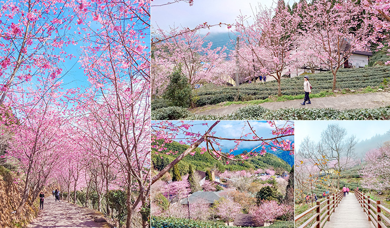 新竹五峰鄉的山上人家,是該地區頗富盛名的景觀民宿,而櫻花季時,綠色的高山茶園與粉色櫻花的交織下,形成超美的畫面,可以說是台灣櫻花季中,非常漂亮的景點之一。能住上一晚深度體驗山上人家風景是最好的,但若不住宿,山上人家也都會開園提供一日遊客付費參觀,櫻花季的山上人家,絕對值得你一訪。